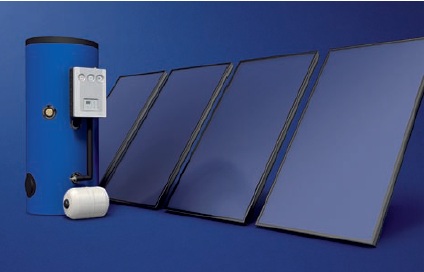 Technicky a investičně nejvýhodnějším řešením je využití plochých kapalinových solárních kolektorů, umístěných na osluněné ploše objektu. Uvnitř budovy je umístěn solární akumulační zásobník („bojler“) potřebné velikosti a uspořádání, opatřený výměníkem tepla. V kolektorech se energií ze slunečního záření ohřívá nemrznoucí kapalina. Kapalina je potrubím vedena do objektu, kde se její teplo využívá např. k ohřevu vody. Celý proces automaticky řídí elektronický regulátor. Tímto způsobem je zajištěno ekonomické využití veškeré energie, která dopadá na