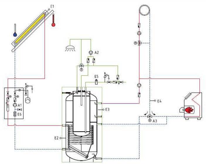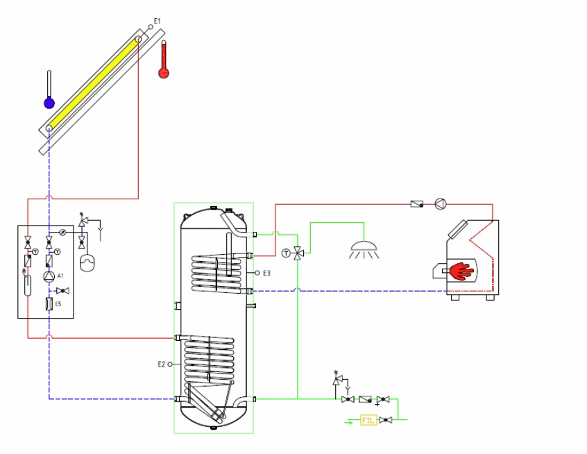 solární kolektor. Pro dosažení dobrého výsledku musí solární systém splňovat celou řadu podmínek. Základní podmínkou je využití kvalitních průmyslově vyráběných solárních kolektorů s garantovanými parametry a dlouhou životností. Tato zařízení opatřená tzv. vysoce selektivní vrstvou vůči slunečnímu záření a speciálním solárním sklem mají maximální účinnost i při extrémních podmínkách v zimních měsících roku. Veškeré díly musí být odolné vůči působení tzv. nízkoteplotní koroze a musí být dimenzovány tak, aby spolu tvořily jeden funkční celek. Systém musí bezpečně odolávat extrémním provozním stavům při odstaveném oběhovém čerpadle v době plného slunečního svitu